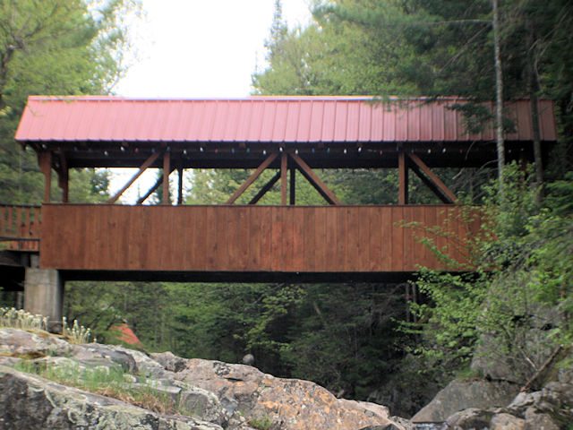 | (Mohawk Falls, ~20', 29-04-h) across Mohawk River E. of Colebrook, Colebrook Township, Coos County, NH. NH26 (Parsons St., becomes Mohawk Rd.) E. 7.5 miles from jct with US3 (Main St.) in Colebrook, right on Washburn Rd. 100 to the bridge on the SW side of the road at 1478. Bridge is behind the house, ask permission. (N44 52.384 W71 21.387) Photos by Scott Wagner 5-28-17. |