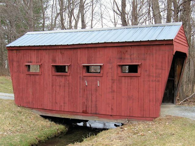 | (Claremont Country Club, ~20', 29-10-c) across a ditch in Claremont, Sullivan County, NH. Maple Av. NW 0.5 miles from jct with Pleasant St. to the country club on the S. side of the road at 53, S. on Country Club Rd. 0.3 miles to the club house Ask permission. (N43 21.727 W72 21.278) Photos by Scott Wagner 4-8-06. |