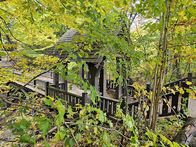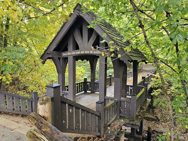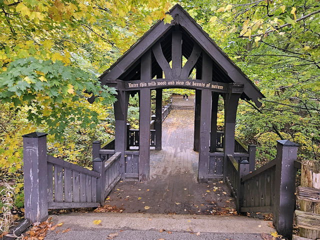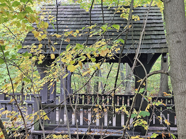 | (Grant Park, 16', 49-41-a) in Grant Park in South Milwaukee, Milwaukee County, WI. Lake Dr. S. 0.35 miles from jct with College Av., left on Grant Park Dr. 0.15 miles, park & walk E. (left) on the trail 100 to the bridge. (N42 55.379 W87 50.885) Photos by Mark & Clare Comstock & Donnie, Veronika & Johanna Wright 10-18-25. |