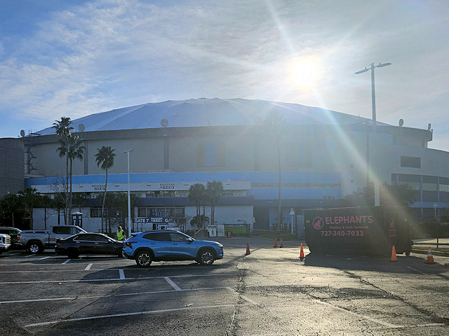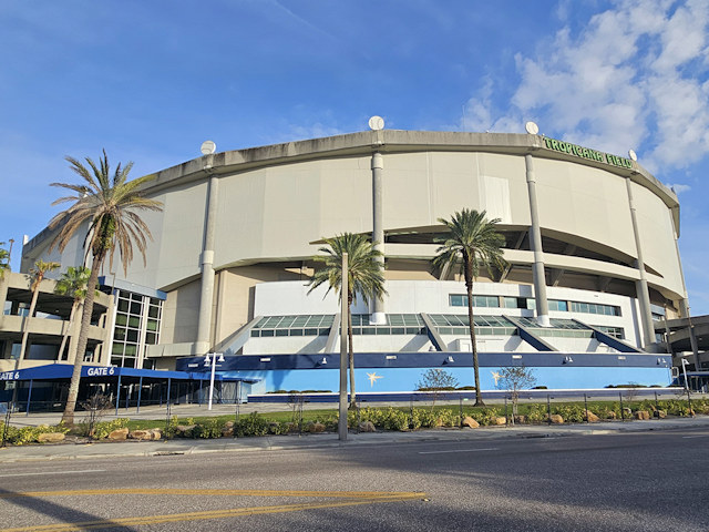 | (Tropicana Field, 700, 1990, FL-52-02) in St. Petersburg, Pinellas County, FL. 9th St. N. 1 block from jct with I175 exit 1, W. on Stadium Dr. (4th Av. - becomes 5th Av.) 0.4 miles to the bldg on the N. side of the road. (N27 46.096 W82 39.196) Top 3 photos by Mark & Tim Comstock 1-8-26. |