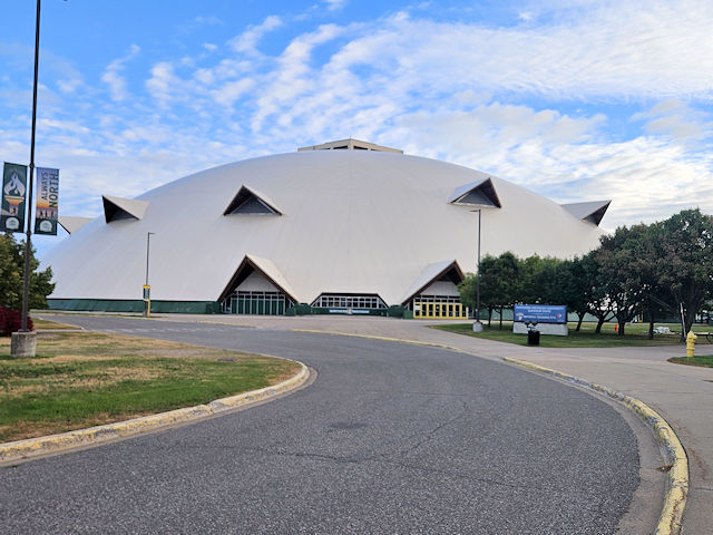 | (Superior Dome, 536', 1991, MI-52-01) in Marquette, Marquette County, MI. 4th (becomes Presque Isle Av.) St. N. 1.1 miles from jct with Bus.US41 (Washington St.) to the bldg on the E. side of the road. (N46 33.617 W87 23.612) Photo by Mark Comstock 10-15-25. |