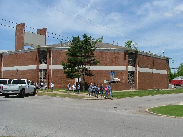 | (Summit Christian Academy, 45', 1987, OK-72-03) in Broken Arrow, Tulsa County, OK. Kenosha St. W. 1.2 miles from jct with OK51, S. on Main St. 0.6 miles, E. on Broadway Av. 0.15 miles (2 blocks) to the school on the N. side of the road at 200. (N36 03.163 W95 47.285) Photo by Jack Schmidt 5-21-09. |