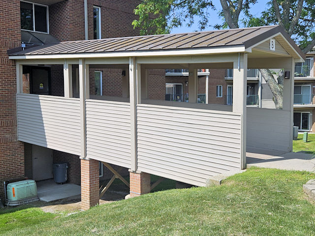 | (Parkway Meadows B, 30', 1979, 22-81-(e) at Parkway Meadows Apartments in Ann Arbor, Washtenaw County, MI. Nixon Rd. N. 0.2 miles from jct with Huron Pkwy, W. on Sandalwood Cir 140, S. into parking lot 240 to the bridge to the S. (N42 18.434 W83 42.510) Photo by Mark Comstock 6-7-25. |