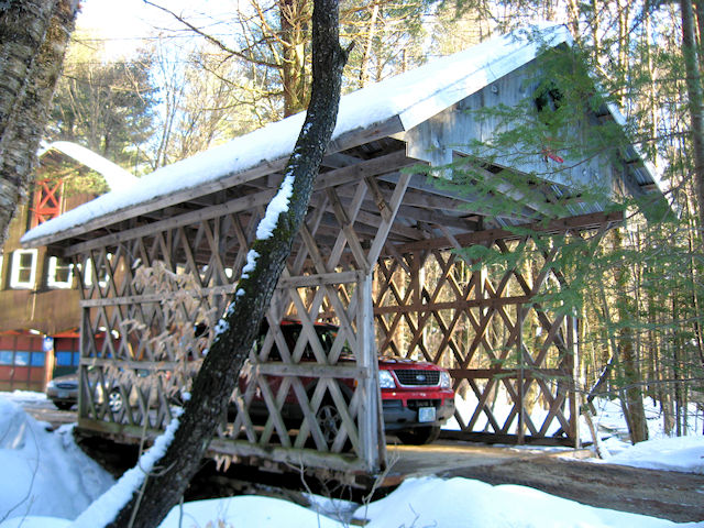 | (RW Heslop, ~22', 29-07-H) across a brook N. of Warner, Warner Township, Merrimack County, NH. Kearsarge Mountain Rd. N. 4.0 miles from jct with NH103 (Main St.) in Warner to the bridge on the E. side of the road at 856. (N43 20.072 W71 50.683) Photo by Scott Wagner 1-27-08. |