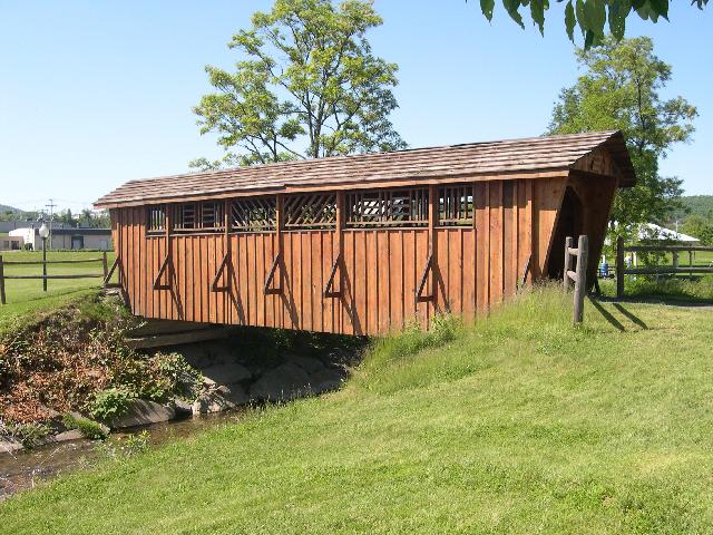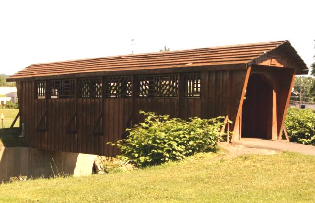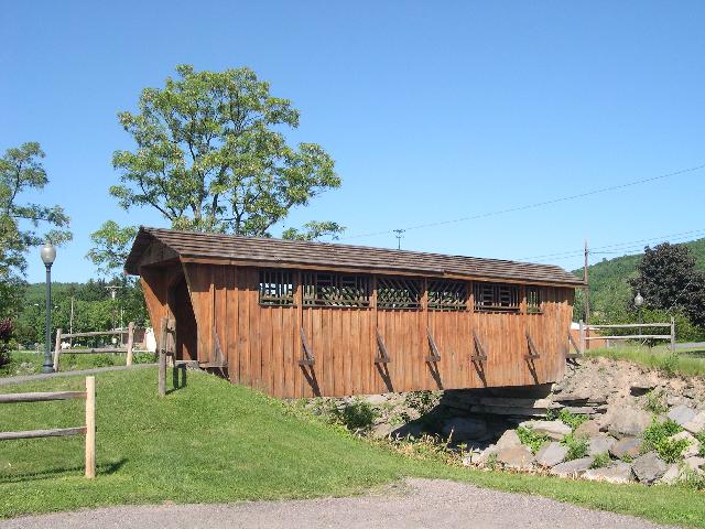 | (Kirkwood Valley Park, 43', 1997, 32-04-e) across Park Creek in Kirkwood Valley Park E. of Binghamton, Kirkwood Township, Broome County, NY. Connecting Rd. W. 0.4 miles from jct with I81 exit 2 just E. of Binghamton, S. on Francis St. 0.1 miles to the park & the bridge on the E. side of the road. (N42 05.683 W75 49.358) Top 2 photos by Carlos Gonzalez 6-16-14. |