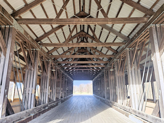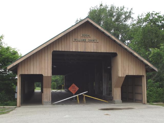 | (Montpelier Fairgrounds, 130', 2004, 35-86-26) across St. Joseph River at the fairgrounds in Montpelier, Superior Township, Williams County, OH. OH107 (E Main St.) E. 0.5 miles from jct with OH576 (Platt St.) in Montpelier, N. into the fairgrounds. Bridge is at the N. end of the fairgrounds. (N41 35.461 W84 35.947) Top 3 photos by Mark Comstock & Nevaeh Forrest 12-22-25. |