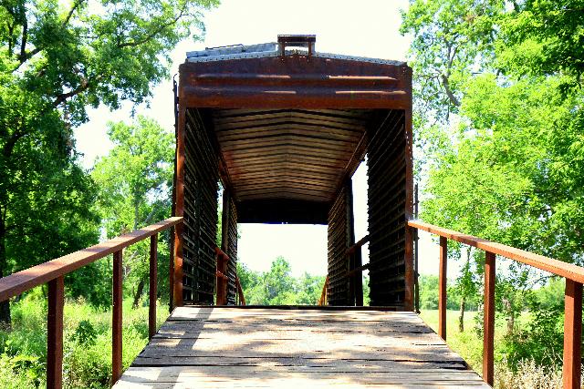 | (Belmar Golf Club, 51', 1995, 36-14-a) across North Fork Little River near the 14th green in Belmar Golf Club N. of Norman, Cleveland County, OK. Indian Hills Rd. E. 3.5 miles from jct with I35 exit 114 N. of Norman to the golf club on the N. side of the road at 1025. (N35 17.635 W97 26.140) Photos by Warren White 7-20-08. |