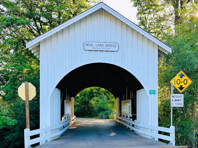 | (Neal Lane, 42', 1929, closed, 37-10-07) across South Myrtle Creek SE of Myrtle Creek, Douglas County, OR. Main St. E. (curves S.) 0.6 miles from jct with I5 exit 108, E. on Riverside Dr. 0.15 miles, SE on Days Creek Cutoff Rd. to the bridge on the NE side of the road. (N43 01.020 W123 16.471) Top 3 photos by Paul Chandler 6-23-25. |