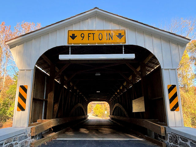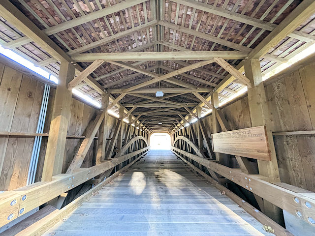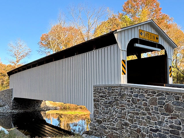 | (Rudolph & Arthur, 99', 1886, Rebuilt 2025, 38-15-01) across Big Elk Creek N. of Lewisville, Elk/New London Township, Chester County, PA. PA841 N. (curves NE) 1.5 miles from jct with PA472 in Lewisville, N. on Lewisville Rd. 0.3 miles, W. on Camp Bonsul Rd. 0.5 miles to the bridge. (N39 44.749 W75 52.939) Top 4 photos by Glenn Allen Wilker 10-27-25. |