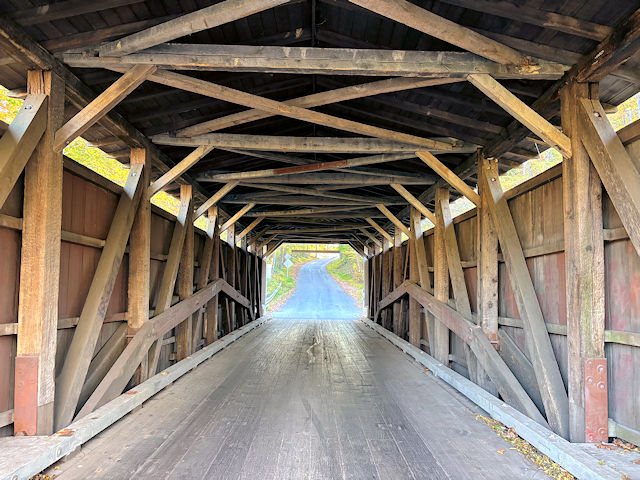 | (Glen Hope, 78', 1889, 38-15-02) across Little Elk Creek SSE of Hickory Hill, Elk Township, Chester County, PA. Hickory Hill Rd. SSE 1.7 miles from jct with PA472 in Hickory Hill to the bridge. (N39 43.617,W75 54.459) Top 2 photos by Glenn Allen Wilker 10-27-25. |