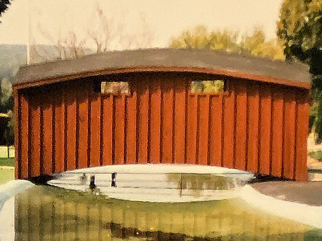 | (Mini Golf, 20', 38-36-ll - Gone) across man made pond SW of Adamstown, East Cocalico Township, Lancaster County, PA. PA272 SW 0.9 miles from jct with PA897 just SW of Adamstown, NW (right) on Hill Rd. 0.1 miles to the bridge on the NE side of the road. (N40 13.633 W76 05.597) Photos by Clyde & Arleen Bradley 10-10-95 |