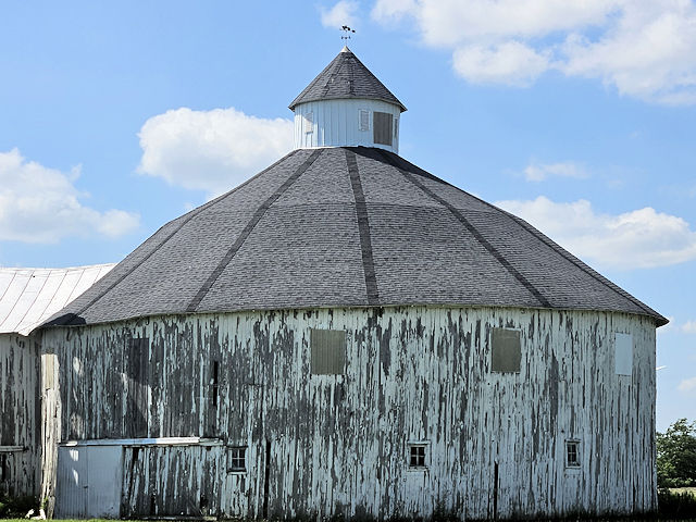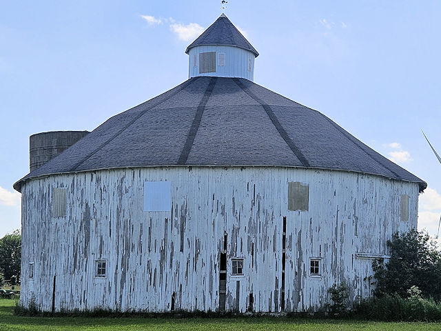 | (Edward Retter, 63', 1906, IN-68-02) NW of Lynn, Washington Township, Randolph County, IN. US36 W. 2.8 miles from jct with US27 at Lynn, N. on S. Bloomingport Rd. 2.4 miles to the barn on the W. side of the road. (N40 04.956 W84 59.472) Top 2 photos by Mark Comstock & Dionis & Nevaeh Forrest 6-22-25. |