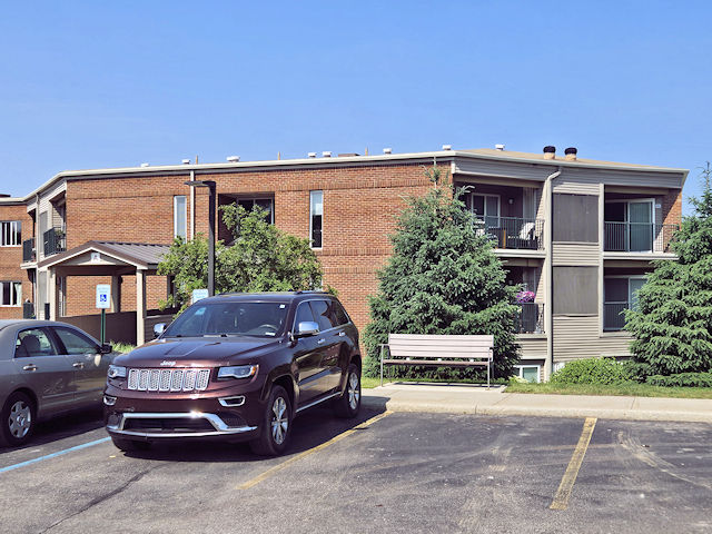 | (#1, MI-81-171) in Ann Arbor, Washtenaw County, MI. Nixon Rd. N. 0.2 miles from jct with Huron Pkwy, W. on Sandalwood Cir 140, S. into parking lot 140 to the bldg to the W. #1, N. most of 8 & connected to #2. (N42 18.459 W83 42.539) Photo by Mark Comstock 6-7-25. |