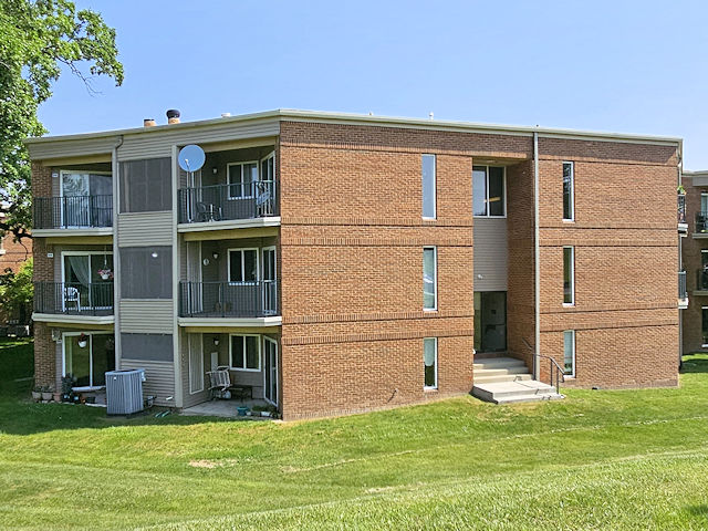 | (#7, MI-81-177) in Ann Arbor, Washtenaw County, MI. Nixon Rd. N. 240 from jct with Huton Pkwy, W. (curves NW) on Sandalwood Cir 120 yds, N. into parking lot 60 to the bldg ahead. #7, S. most of 8 & connected to #5 & #8. (N42 18.388 W83 42.537) Photo by Mark Comstock 6-7-25. |