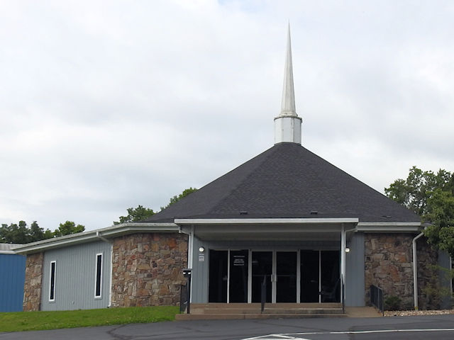 | (Church of The Nazarene, MO-73-05) in Neosho, Newton County, MO. Neosho Blvd N. 0.85 miles from jct with Bus.49, W. on Johnson Dr. 0.1 miles, veer left onto Faithill Dr. 100 yds, S. into parking lot 200 to the church. (N36 51.332 W94 23.202) Photo by Jack & June Schmidt 6-14-25. |