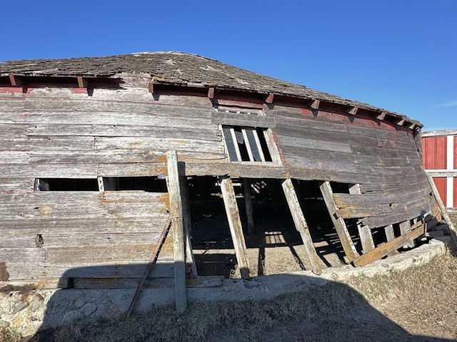 | (Robert Abell, 40', 1942, ND-24-01) NW of Lehr, East Logan Township, Logan County, ND. 78th St. W. 4.7 miles from jct with 49th Av. on the NW side of Lehr, N. on 46th Av. 6.0 miles, W. on 72nd St. 1.0 miles, N. on 45th Av. 0.45 miles to the barn. (N46 22.576 W99 28.516) Photo by Jared Hartl 11-21-25. |