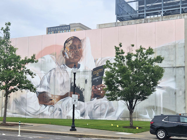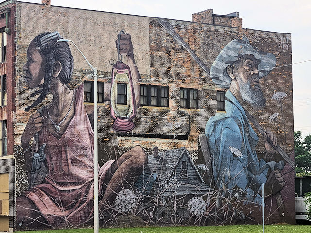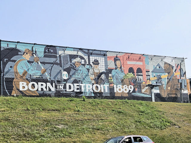 | (Mural) N. side Michigan Av. 80 E. of Brooklyn St. (N42 19.903 W83 03.813) Photo by Mark Comstock [4-14-24] |