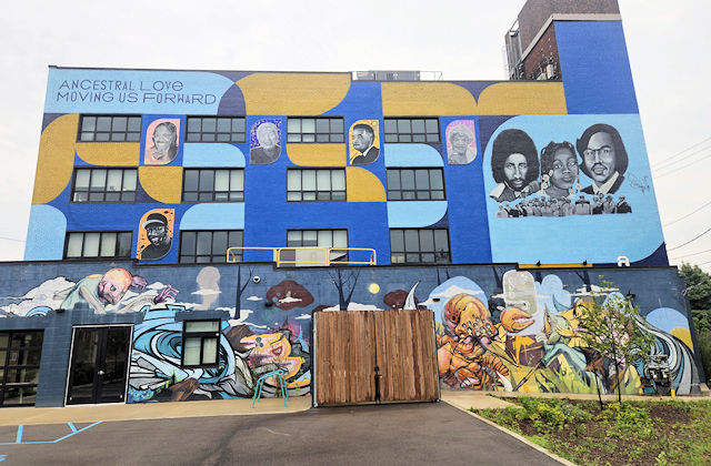 (Murals) S. side Clifford St. 140 E. of Washington Blvd. (N42 20.066 W83 03.011) Photo by Mark Comstock & Dionis Forrest 9-20-22 |