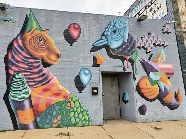 | (Animals & Colors) E. side 17th St. 110 N. of Vernor Hwy. (N42 19.748 W83 04.744) Photo by Mark Comstock & Sylvia & Chris Dietel & Bea Muglia [6-12-24] |