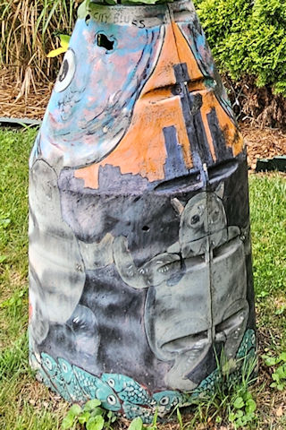 (Octopus) E. side Cass Av. 150 S. of Henry St. (N42 20.330 W83 03.396) Photo by Mark Comstock & Peyton Bland & Becki Spangler 9-11-21 |