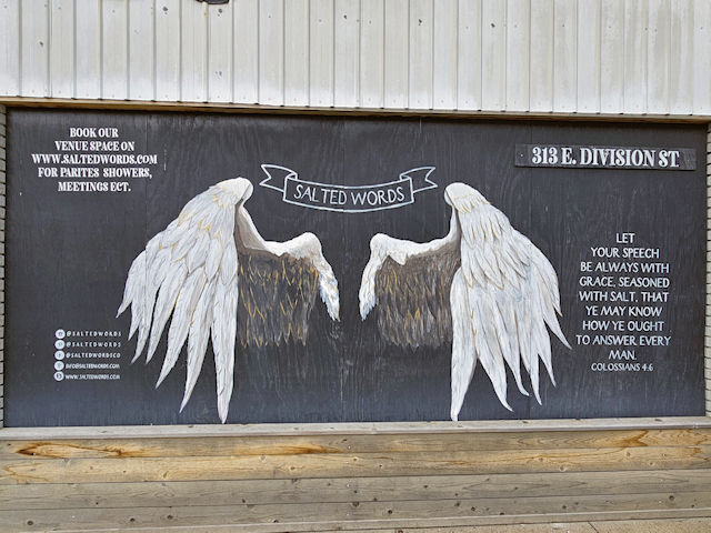(Angel Wings) N. side Division St. 0.1 miles E. of RR tracks at 313. (N41 59.029 W86 06.223) [10-25-25] |