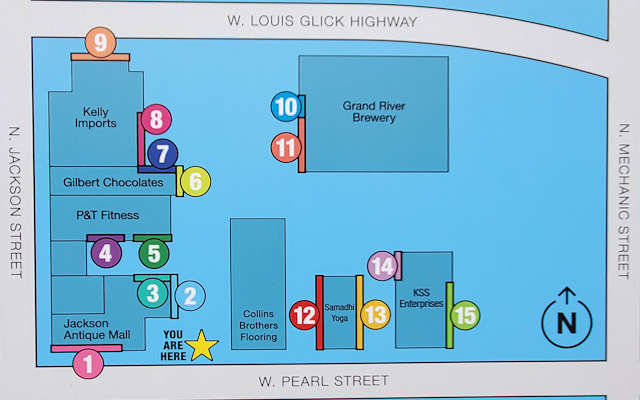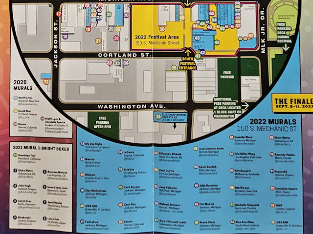 | Click on a numbered circle for a view of that mural. Photos by Mark Comstock & Jennifer Tasker 5-8-22. |