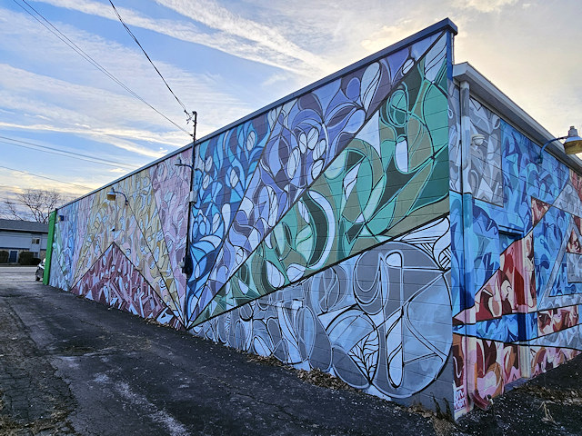 , Lucas County, OH. On the N. side of Airport Hwy 110 E. of Rancamp Av. at 7448, N. & E. side of bldg. (N41 36.645 W83 43.186) Photos by Mark Comstock & Nevaeh Forrest 12-22-25.