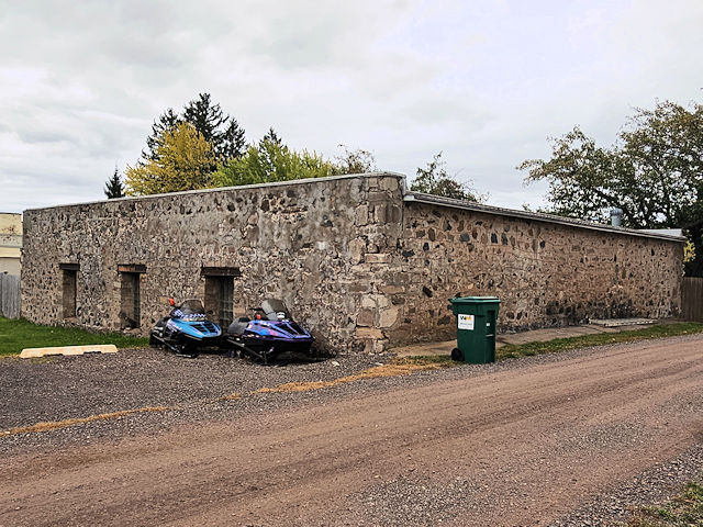 , Iron County, WI. On the N. side of Copper St. US51 S. 0.1 miles from jct with Silver St., E. in alley 130 to the bldg on the N. side of the road. (N46 26.920 W90 10.870) Photo by Mark Comstock 10-16-25.
