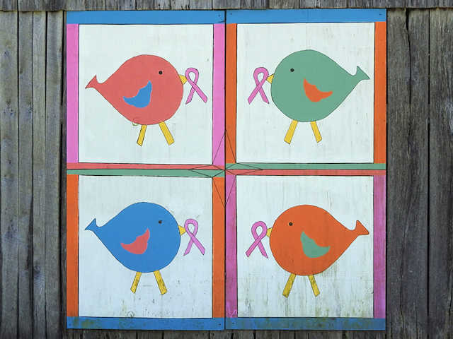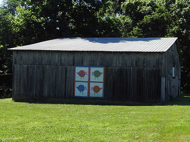 | (Untitled, KY-50-33) W. of Munfordville, Hart County, KY. KY88 (West St. - becomes Cub Run Hwy) W. 12.6 miles from jct with Union St. in Munfordville, S. on KY728 (Gap Hill Rd.) 1.5 miles, E. on Cub Run Hollow Rd. 1.0 miles to the quilt ahead at 1095. Unknown. (N37 17.010 W86 02.974) Photos by Jack & June Schmidt 6-20-17. |
