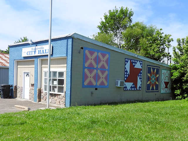 , Hart County, KY. US31W S. 0.1 miles from jct with KY728 (Bacon Creek Rd.) to the quilt on the S. side of the road at 7775. City Hall. (N37 22.644 W85 54.188) Photos by Jack & June Schmidt 6-21-17.