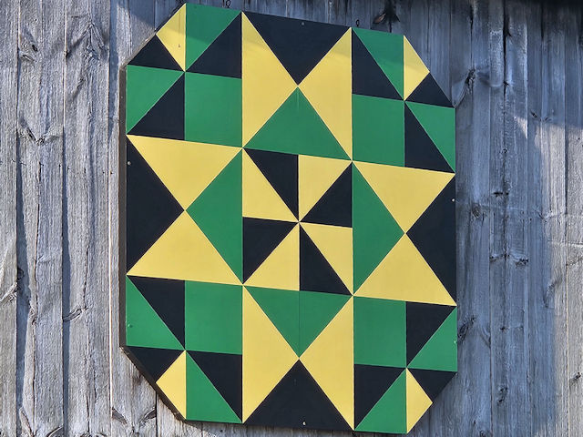 | (Untitled, MI-73-07) E. of Birch Run, Birch Run Township, Saginaw County, MI. Birch Run Rd. E. 1.5 miles from jct with I75 exit 136 on the E. side of Birch Run to the quilt on the S. side of the road at 10470. Unknown. (N43 14.975 W83 44.705) Photos by Mark Comstock 8-10-25. |
