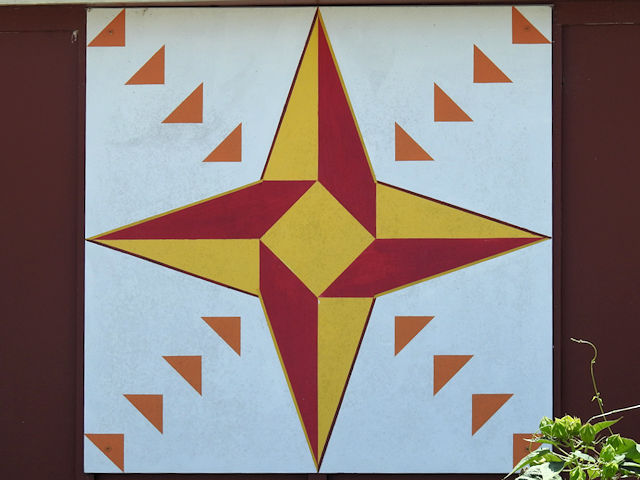 | (Untitled, MO-36-10) S. of Berger, Boeuf Township, Franklin County, MO. SR B S. 1.9 miles from jct with Berger Rd. in Berger to the quilt on the W. side of the road at 3986. Bias Vineyards & Winery. (N38 39.070 W91 20.933) Photos by Jack & June Schmidt 8-1-24. |