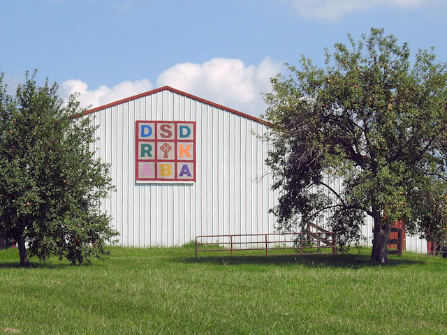 | (Celtic Cross, MO-74-18) S. of Hopkins, Hopkins Township, Nodaway County, MO. Katy Rd. S. 0.3 miles from jct with Mc Pherson St. in Hopkins to the quilt on the E. side of the road at 12660. Janice & John Onley. (N40 32.570 W94 49.254) Photos By Jack & June Schmidt 8-27-23. |