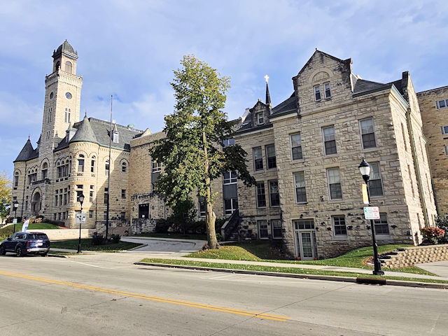 , Waukesha County, WI. At the SW corner of Main St. & East Av. (N43 00.749 W88 13.617) Photos by Mark & Clare Comstock 10-17-25.