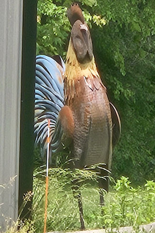 | (Rooster) NE of Milan, Augusta Township, Washtenaw County, MI. 3Milan Oakville Rd. E. 7.5 miles from the US23 underpass, N. on Whittaker Rd. 3.0 miles, E. on Tallada Rd. 0.6 miles to the statue on the N. side of the road at 8635. (N42 07.727 W83 35.250) Photo by Mark Comstock 6-14-25. |