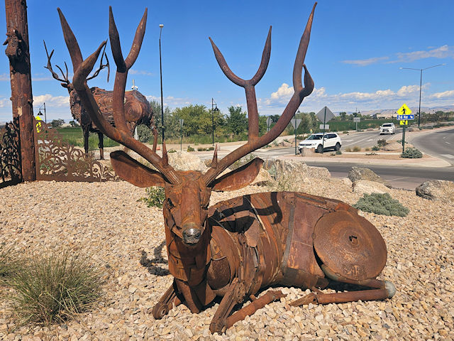 , Mesa County, CO. 24 Rd. N. 0.95 miles from jct with US50 on the W. side of Grand Junction to the statue in the roundabout. (N39 06.381 W108 36.490) Photo by Mark & Clare Comstock 9-22-25.
