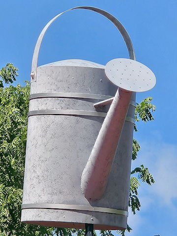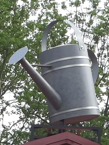 | (Watering Can) at The Watering Can N. of Centerville, Center Township, Wayne County, IN. Centerville Rd. S. 0.1 miles from jct with US70 exit 145 N. of Centerville, E. 0.2 miles to the can on the S. side of the road at 2131. (N39 51.522 W84 59.575) Photo by Mark Comstock & Dionis & Nevaeh Forrest. |