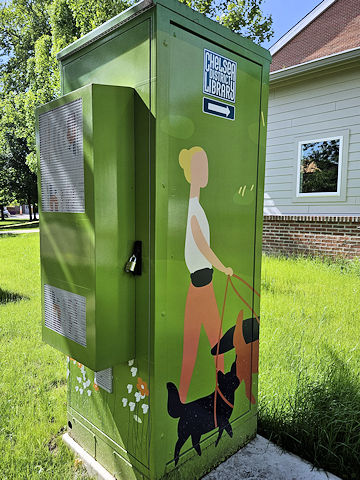 | (Utility Boxes) at Chelsea District Library in Chelsea, Washtenaw County, MI. On the N. side of Orchard St. 150 E. of Main St. at 221. Photos by Mark Comstock 6-25-25. | |||