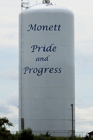 | (Pride & Progress #3) in Monett, Lawrence County, MO. County Rd. E. 0.4 miles from jct with Bus.US60 (Kyler St.) to the tower on the N. side of the road. (N36 55.072 W93 54.423) Photo by Jack & June Schmidt 6-14-25. |