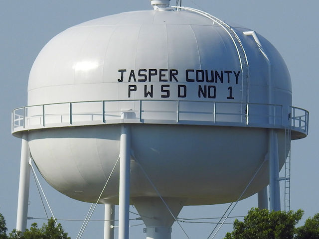 | (P W S D No 1) W. of Joplin, Galena Township, Jasper County, MO. 7th St. (MO66) W. 3.05 miles from jct with Main St. in Joplin, S. on Central Av. 0.2 miles, E. on Balsam Ln. 0.3 miles to the tower. (N37 04.897 W94 34.721) Photo by Jack & June Schmidt 6-14-25. |