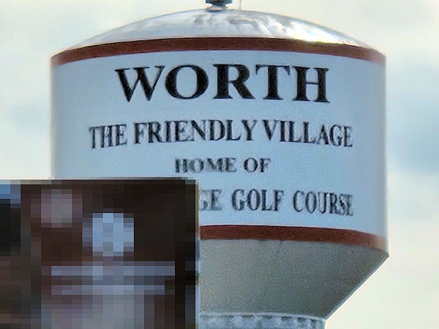 , Cook County, IL. 109th St. W. 3 blocks from jct with Ridgeland Av., S. on Neenah Av. 0.15 miles to the tower on the W. side of the road. (N41 41.517 W87 46.989) Photo by Mark & Clare Comstock 10-18-25.