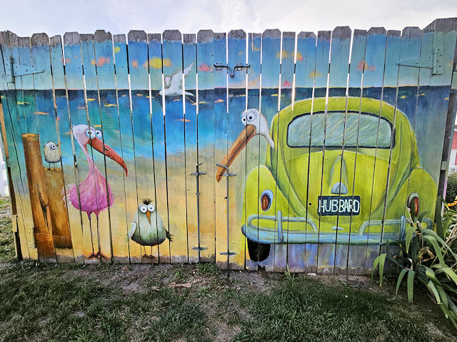 (Birds & VW Beetle) W. side Main St. 60' S. of Pine St. in alley 150'. (N43 56.534 W83 16.400) Photo by Mark Comstock & Cathy/Donnie/Veronika/Johanna Wright [8-10-25] |