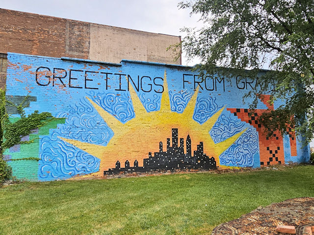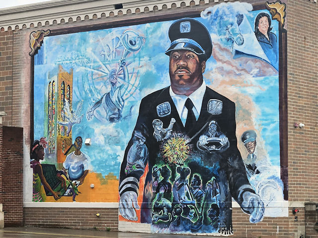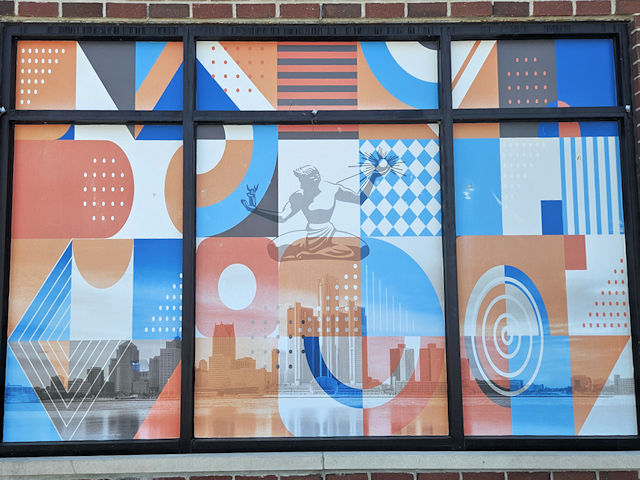 | (Mural) N. side Michigan Av. 80 E. of Brooklyn St. (N42 19.903 W83 03.813) Photo by Mark Comstock [4-14-24] |