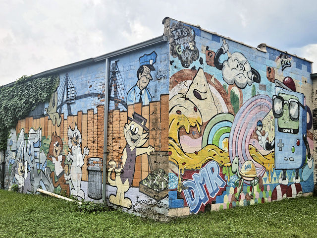 (Cartoon Characters) W. side Rosa Parks Blvd 80 S. of Calumet St. (N42 20.731 W83 04.823) Photo by Mark Comstock [7-29-25] |