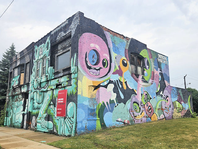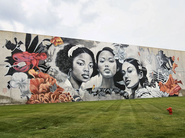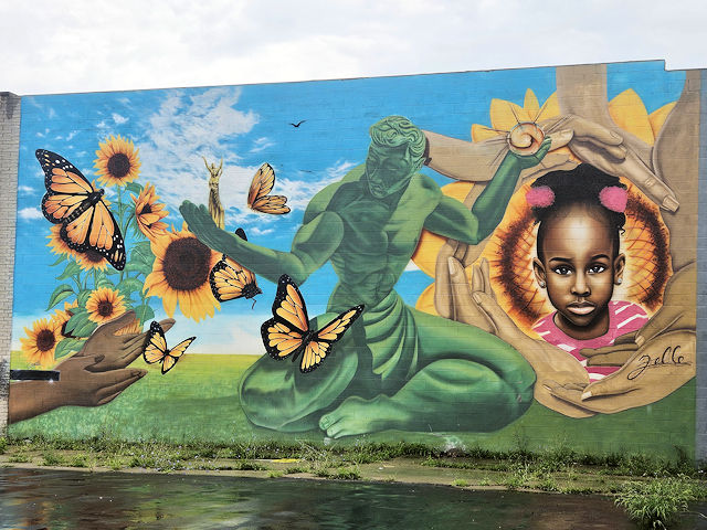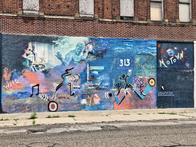 (Murals) S. side Clifford St. 140 E. of Washington Blvd. (N42 20.066 W83 03.011) Photo by Mark Comstock & Dionis Forrest 9-20-22 |