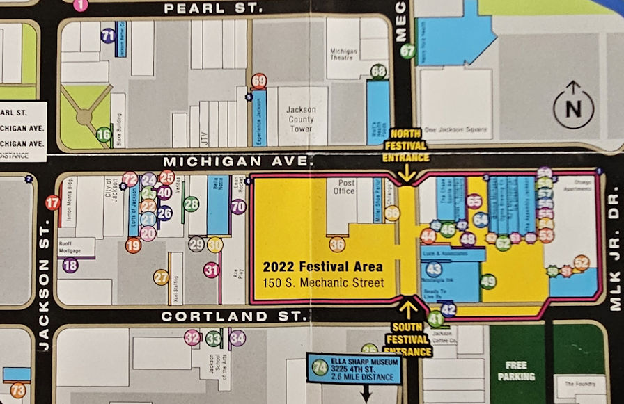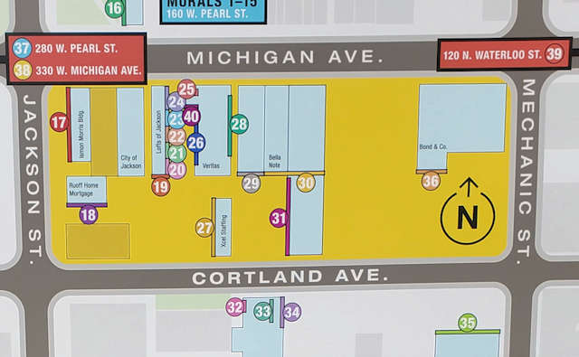 | Click on a numbered circle for a view of that mural. Photos by Mark Comstock & Jennifer Tasker 5-8-22. |
