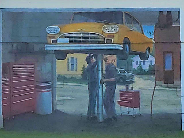 (Checker Cab in Garage) NE corner Walnut & Portage Sts. rear of bldg. (N42 17.214 W85 34.550) Photo by Mark Comstock [5-28-22] |