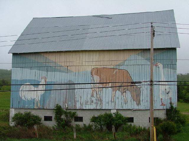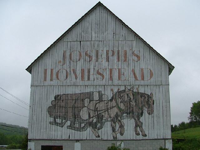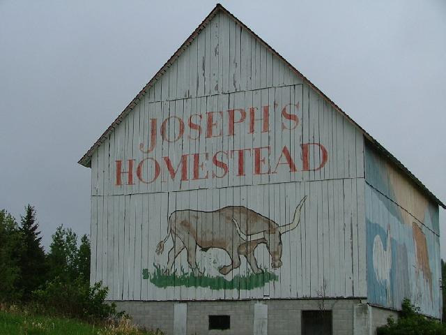 | (Josephs Homestead) N. of Sault Ste Marie, Algoma County, ON. PH17 N. 16.7 miles (26.9km) from jct with PR550 (Second Line E) on the NE side of Sault Ste Marie to the mural on the E. side of the road. (N46 45.275 W84 21.715) Photos by Jack Schmidt 5-27-07. |