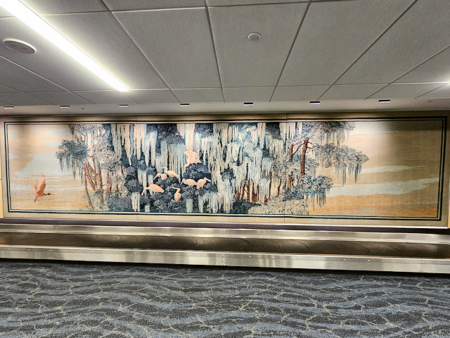| (Spoonbill Birds) Inside Tampa International Airport main terminal Delta baggage claim. (N27 58.819 W82 32.122) Photo by Mark Comstock & Dave & Kristen & Zachary Storey [1-7-26] |