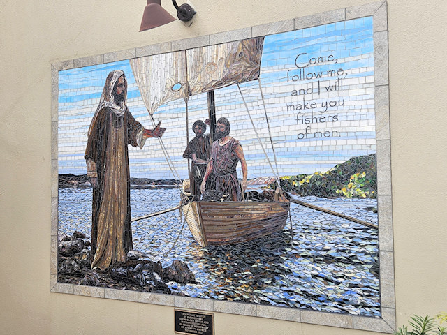 | (Mosaic Come Follow Me) S. side Twiggs St. 90 E. of Marion St. (N27 56.985 W82 27.394) Photo by Mark & Tim Comstock [1-8-26] |
